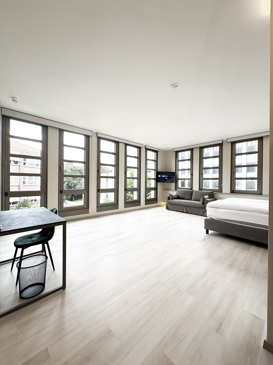 The Standard Triple Room offers everything you need for a comfortable and effortless stay in Neuss, just minutes from Düsseldorf. The Quadruple Room has four single beds, a private bathroom, Smart TV with apps like Netflix and Prime Video, wardrobe, work desk, Nespresso machine with complimentary capsules, electric kettle with teas, and a mini fridge stocked with a complimentary bottle of water.